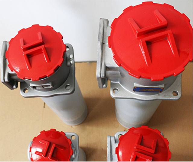 過濾器安裝在油箱頂部,筒體部分浸入油箱內(nèi),回油筒體浸入油箱內(nèi),進油口設(shè)有管式與法蘭式連接,從而簡化了系統(tǒng)管路,使系統(tǒng)布置較為緊湊,安裝連接方便。